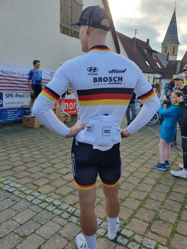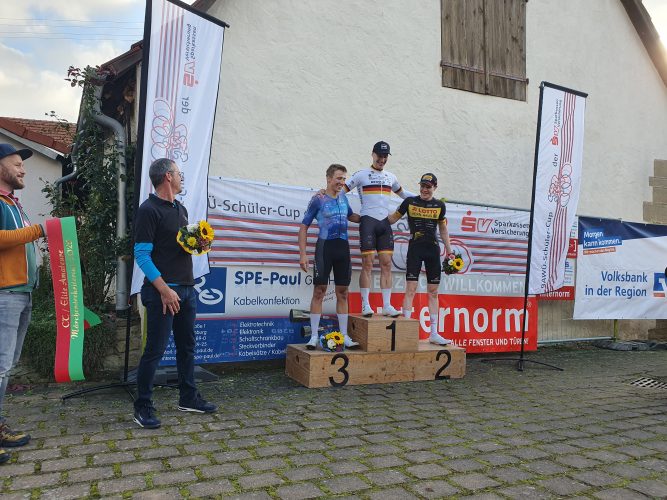 Das Hauptrennen der Elite-Amateure und Amateure wurde wie erwartet zu einer Machtdemonstration von Dario Rapps vom RSC Kempten. Der deutsche Kriteriumsmeister gewann alle acht Wertungssprints und setzte sich damit ganz souverän durch. Der Sieger war nach dem Rennen happy: „Es hat richtig Spaß gemacht, hier zu fahren, es war richtig was los“ lobte Rapps die Stimmung am Streckenrand. Gemeinsam mit drei weiteren Fahrer hatte sich Rapps nach circa einem Renndrittel vom Feld abgesetzt und den Vorsprung kontinuierlich ausgebaut, sodass früh klar war, dass diese vier Fahrer den Sieg unter sich ausmachen. Hinter Rapps belegte Cedric Abt vom deutschen Kontinental-Team Lotto Kern-Haus den zweiten Platz. Abt, der 2021 bereits das Juniorenrennen in Wendelsheim gewinnen konnte, holte mit Rang 2 „das Maximum raus“ und war dementsprechend zufrieden. Mit Oscar Schempp (Team Stork-Metropol) belegte ein weiterer Fahrer eines deutschen Kontinentalteams, der dritthöchsten Kategorie im Profibereich, den dritten Platz. Schempp fuhr erst vor wenigen Jahren sein erstes Anfängerrenen in Wendelsheim und machte seitdem eine rasante Entwicklung. In diesem Jahr gewann er unter anderem die baden-württembergische Meisterschaft auf der Straße. Das Rennen in Wendelsheim nahm er recht spontan in seinen Rennkalender auf. Am Vortag stand er noch bei einem Profirennen in Holland am Start, sein nächster Renneinsatz ist Anfang Oktober die Tour of Ankara in der Türkei. Wilhelm Buchmüller (Equipe Stuttgart-Vaihingen) belegte als Teil der Spitzengruppe den vierten Rang.